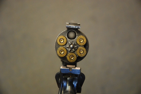 Deactivated Webley .38 cocks and dry fires with open chambers and kit: